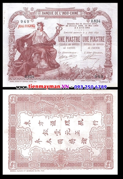 Tiền giấy Đông Dương 1 Đồng 1901 Hải Phòng | Thành Thái