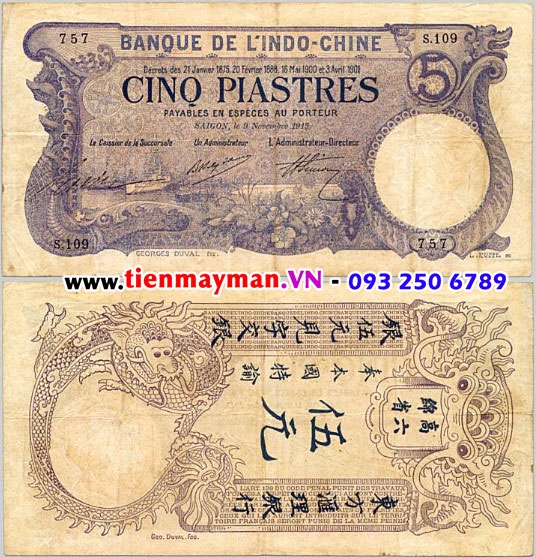 Kích thước tờ 5 Piastre 1920 Thành Thái Sài Gòn: 0