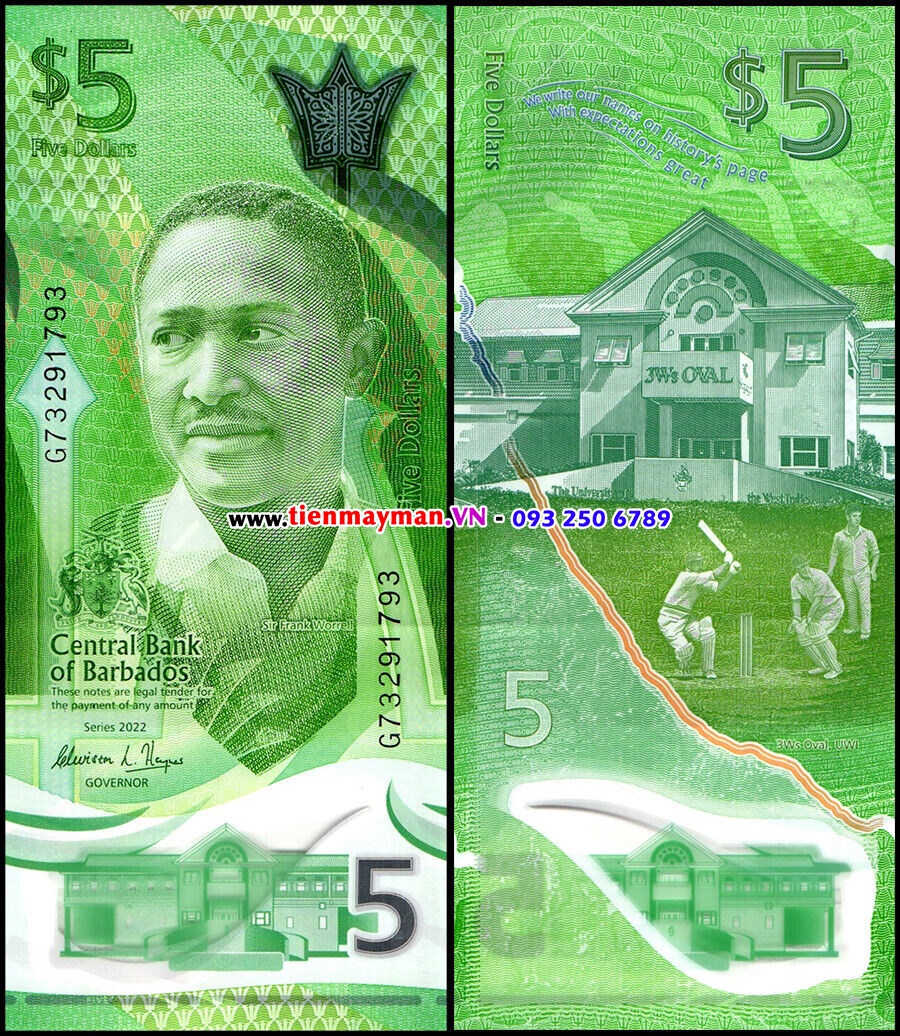 Barbados 5 Dollar 2022 UNC Polymer