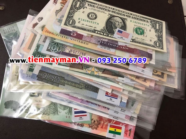 mỗi tờ tiền trong bộ 100 tờ tiền thế giới của 100 nước đều được lồng trong túi nilon