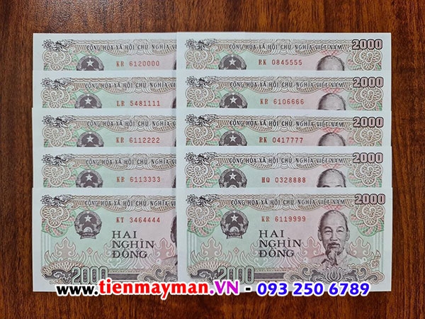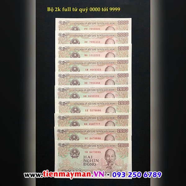 Bộ tiền 2k seri tứ quý gồm 10 tờ tiền 2.000đ seri tứ tứ quý 0000 -> 9999 như hình chi tiết