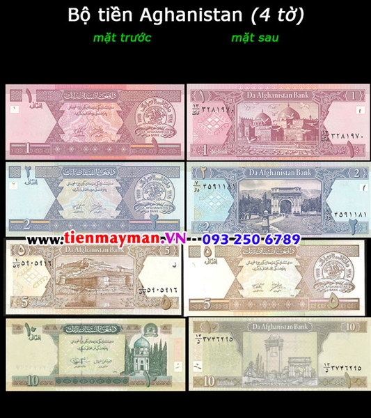 Bộ tiền Afghanistan 4 tờ 1 2 5 10 Afghanis