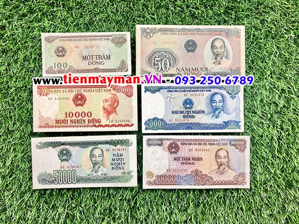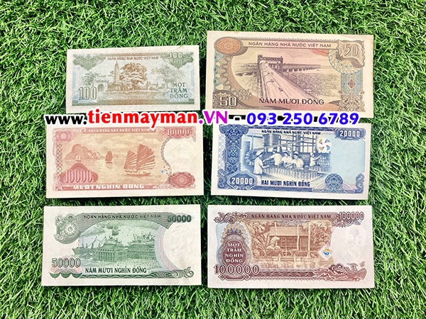 Bộ tiền cotton Việt Nam 6 tờ 50 100 10.000 20.000 50.000 100.000 Đồng giai đoạn 1987-2000, đây là những tờ tiền đã hết hạn lưu hành nhưng gắn liền kỉ niệm với nhiều người đặc biệt là thế hệ 7x 8x. Gồm các mệnh giá :