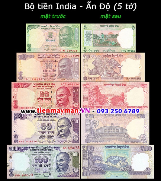 - Gồm 5 tờ tiền Ấn Độ mới 100%