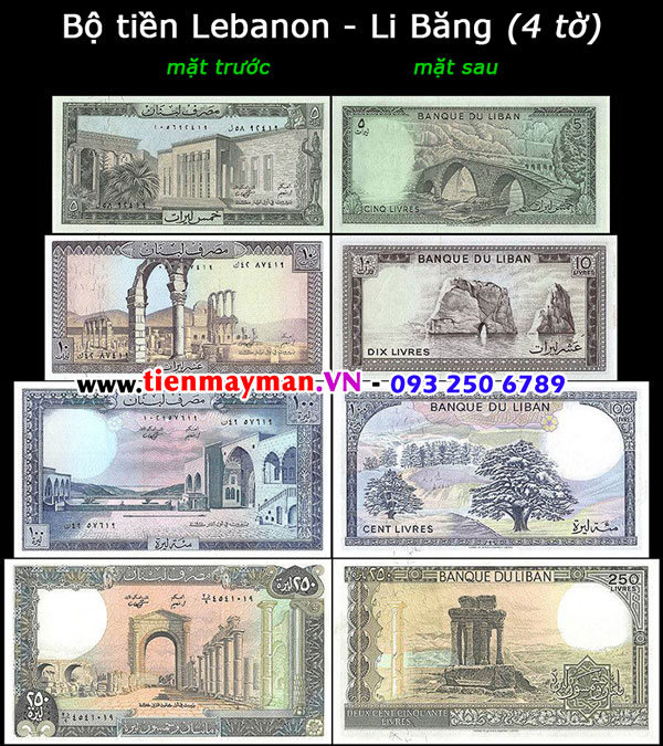 - Gồm 4 tờ tiền Li Băng mới 100%