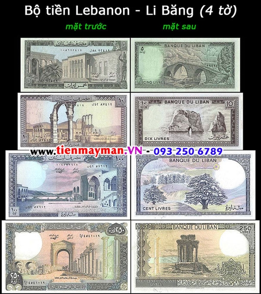 Bộ tiền Lebanon - Li Băng 4 tờ 5 10 100 250 Livres
