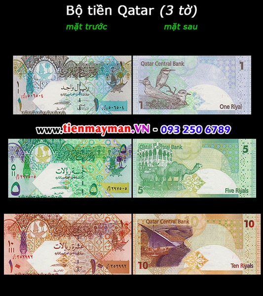 Bộ tiền Qatar 3 tờ 1 5 10 Riyals