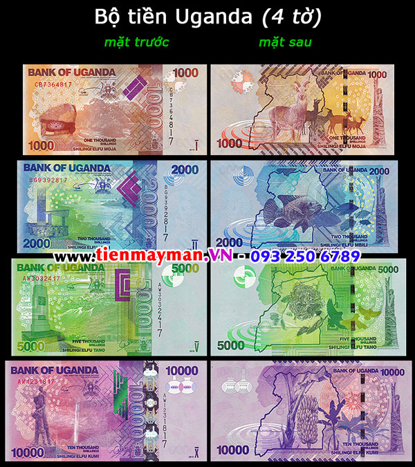 - Gồm 4 tờ tiền Uganda mới 100%