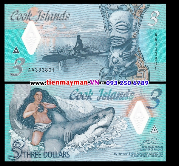 Cook Islands 3 Dollars 2021 UNC Polymer