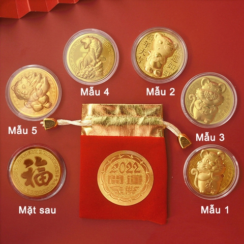 - Đồng Xu hình con hổ vàng 2022 được thiết kế với nhiều mẫu mã hình dánh đáng yêu của các chú hổ vàng bên tiền vàng như 1 lời chúc người được tặng 1 năm mới đầy tài lộc thịnh vượng. Tặng kèm 1 túi gấm bằng nhung đỏ tăng thêm sự may mắn cho xu con hổ vàng.