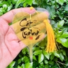 Sản phẩm bao gồm: lá viết chữ thư pháp, có dấu mộ.c đỏ, đã ép platic, có lỗ treo dây, có tặng kèm dây tua rua, nilon bọc lá.