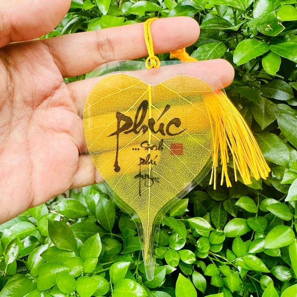Lá Bồ Đề thư pháp PHÚC SINH PHÚ QUÝ may mắn, bình an, có dây treo xe ô tô, điện thoại