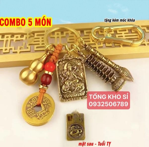 🌟Bộ sản phẩm : Móc Khóa 5 Món : Dây Vàng 5 Xu + Bầu Rỗng + Thẻ Phật + Tháp Văn Xương + Bút Văn Xương + Cát Đỏ Chu sa , tặng kèm móc bấm