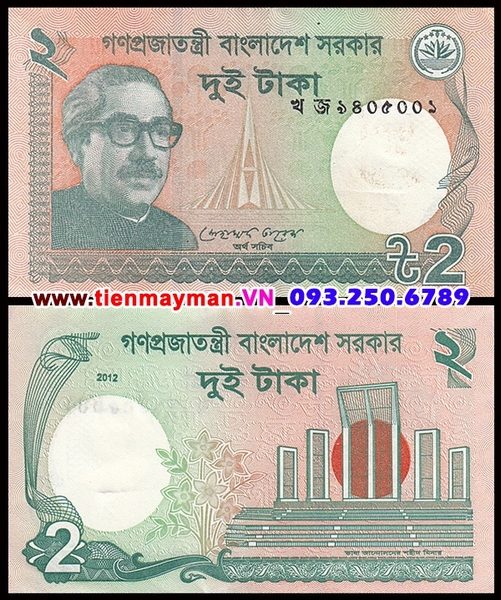 Tiền giấy Bangladesh 2 taka 2011 UNC