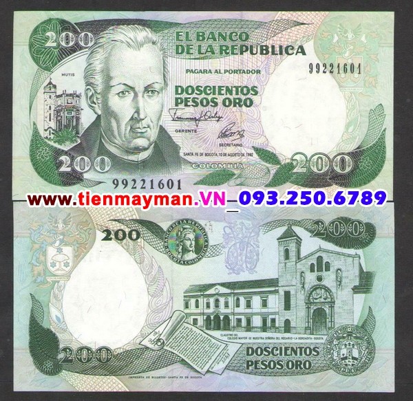 Tiền giấy Colombia 200 Pesos 1992 UNC