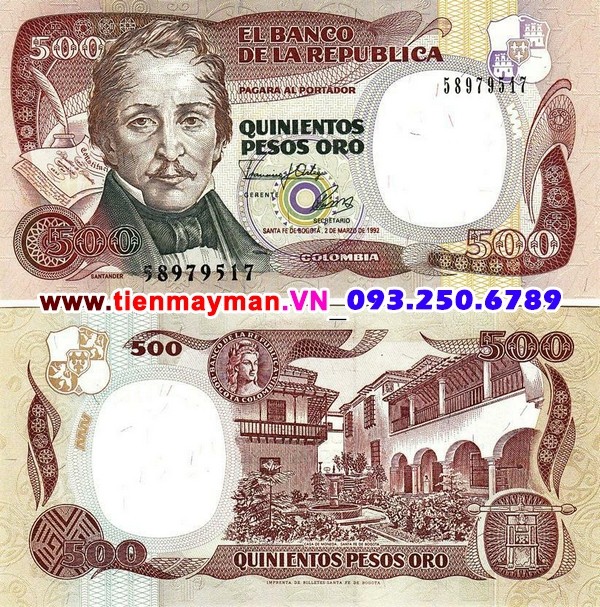 Tiền giấy Colombia 500 Pesos 1992 UNC