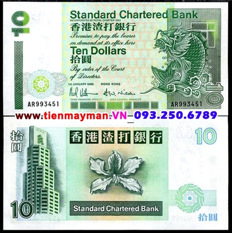 Tiền giấy Hong Kong 10 Dollars 1993 UNC Standard Chartered Bank