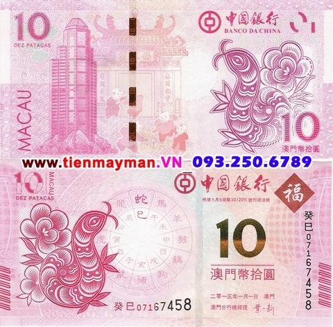Tiền giấy Macao 10 Patacas 2013 UNC Bank of China