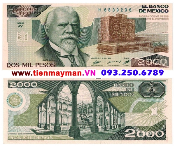Tiền giấy Mexico 2000 Pesos 1985 UNC