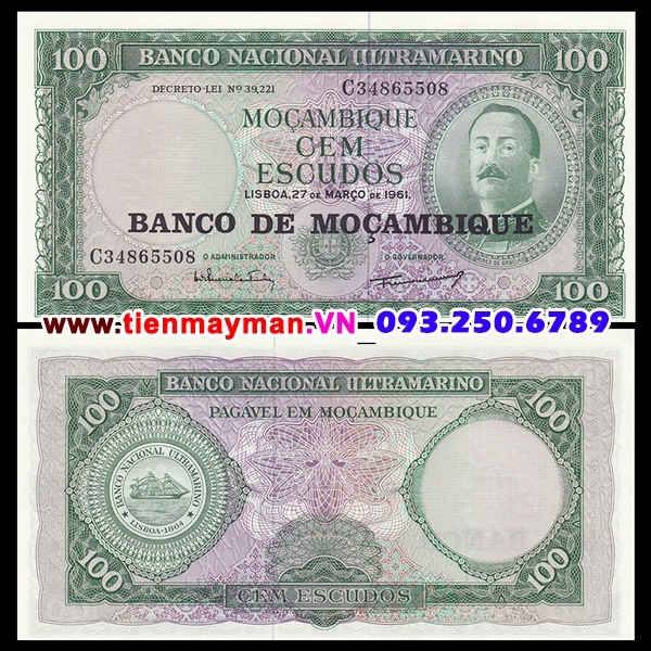Tiền giấy Mozambique 100 Meticais 1961 UNC