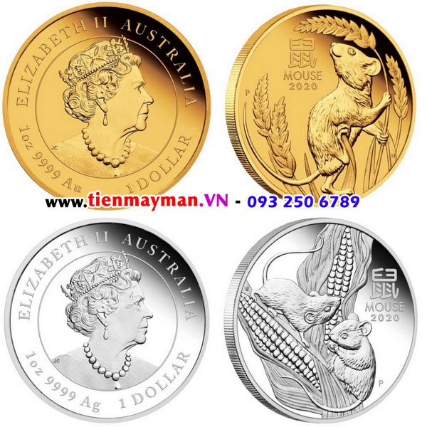 Tết âm lịch Canh Tý , đáp ứng nhu cầu tiền lì xì tết người châu Á, Úc đã phát hành và bán cặp tiền xu hình con chuột mạ vàng mạ bạc mệnh giá 1 Dollar
