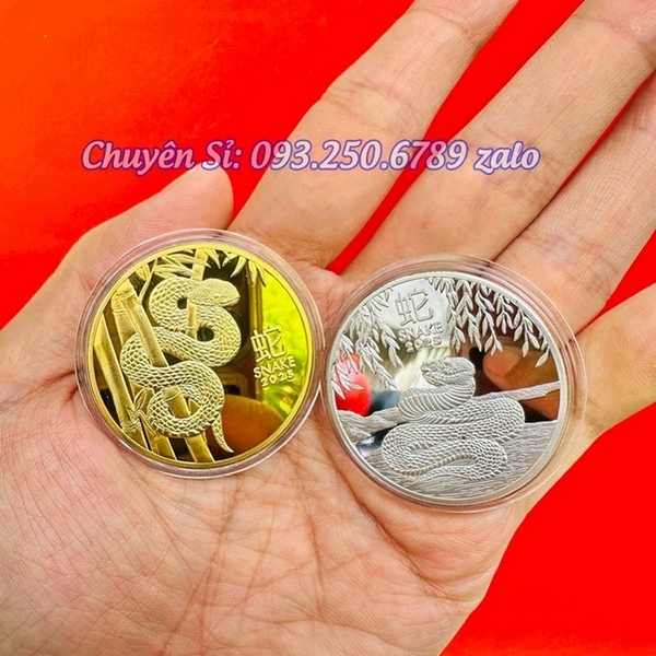 + Đồng tiền xu hình con Rắn mạ bạc : là hình ảnh 2 mẹ con nhà Rắn đang thong thả dưới tán cây, đi kèm ký tự TỴ được viết bằng tiếng Hán và số 2025